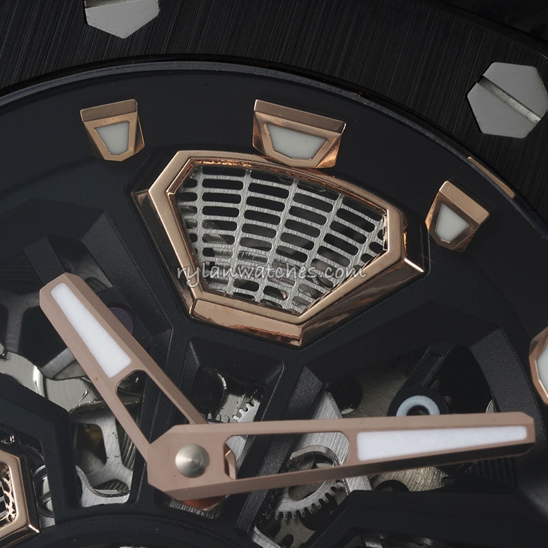 The Audemars Piguet Concept Tourbillon Carbon Clone stands at the intersection of futuristic engineering and modern haute horlogerie aesthetics. Inspired by the UAE special edition of the Royal Oak Concept series, this model elevates replica craftsmanship with a forged carbon case, a skeletonized dial, and a fully functional Swiss tourbillon positioned at 6 o’clock. Every surface, screw, and structural element is built to recreate the dramatic architecture that defines the Royal Oak Concept line.