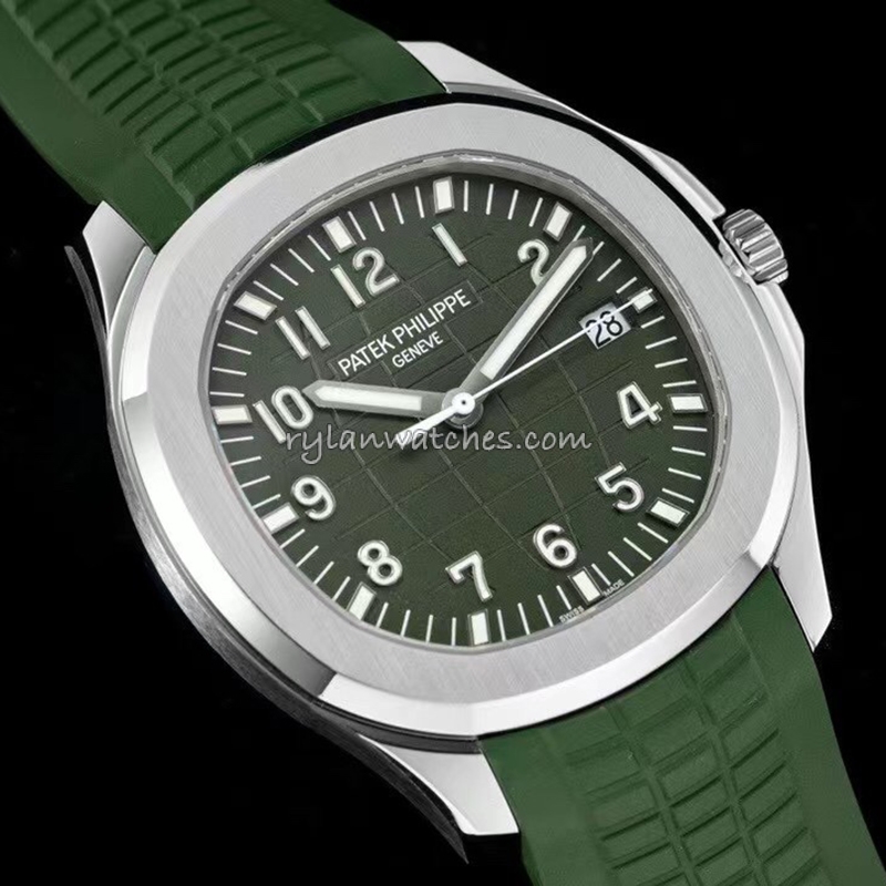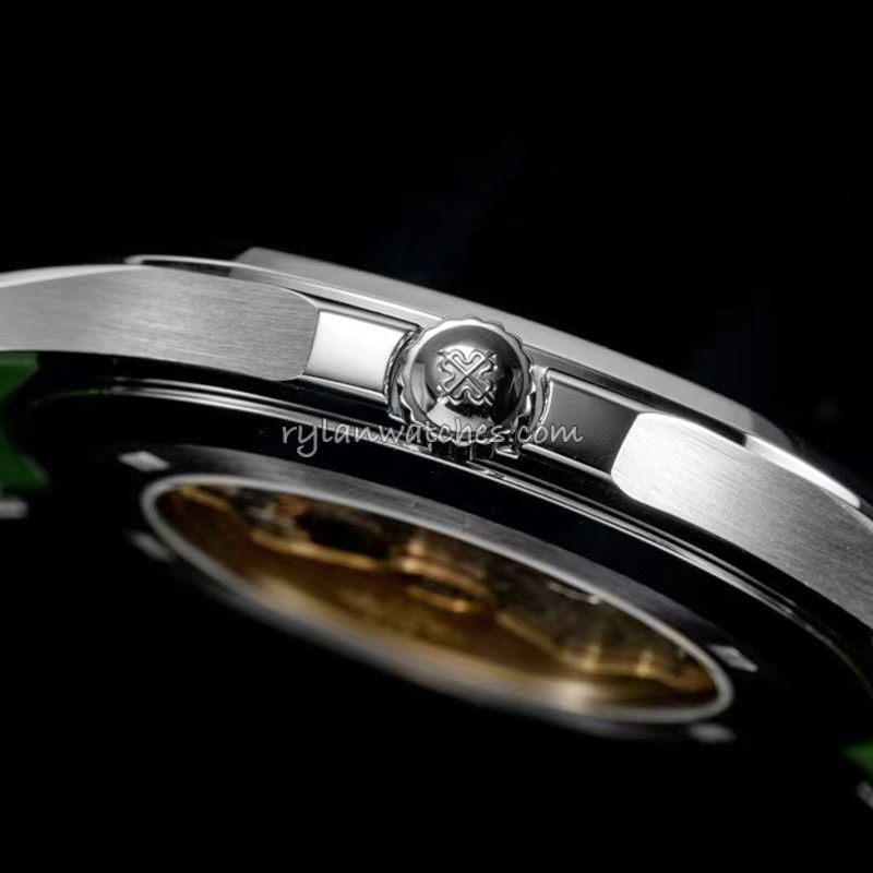The upgraded green rubber strap not only complements the dial aesthetically but also offers superior comfort. Manufactured using imported materials, the strap is resistant to sweat, heat, and corrosion, maintaining its elasticity and color over time. The enhanced buckle features a perfectly matched Patek Philippe logo, with no displacement or misalignment—a detail that reinforces its high-level craftsmanship.