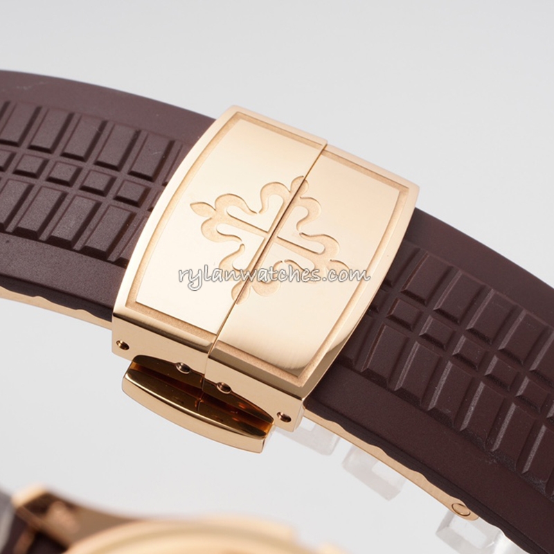 Completing the watch is Patek Philippe’s iconic Tropical rubber strap, finished in a warm brown that matches the dial’s tone. This strap is known for its durability, pleasant flexibility, and resistance to extreme temperatures. Whether worn in daily life or active travel scenarios, it provides exceptional comfort and integrates seamlessly with the rose-gold case.