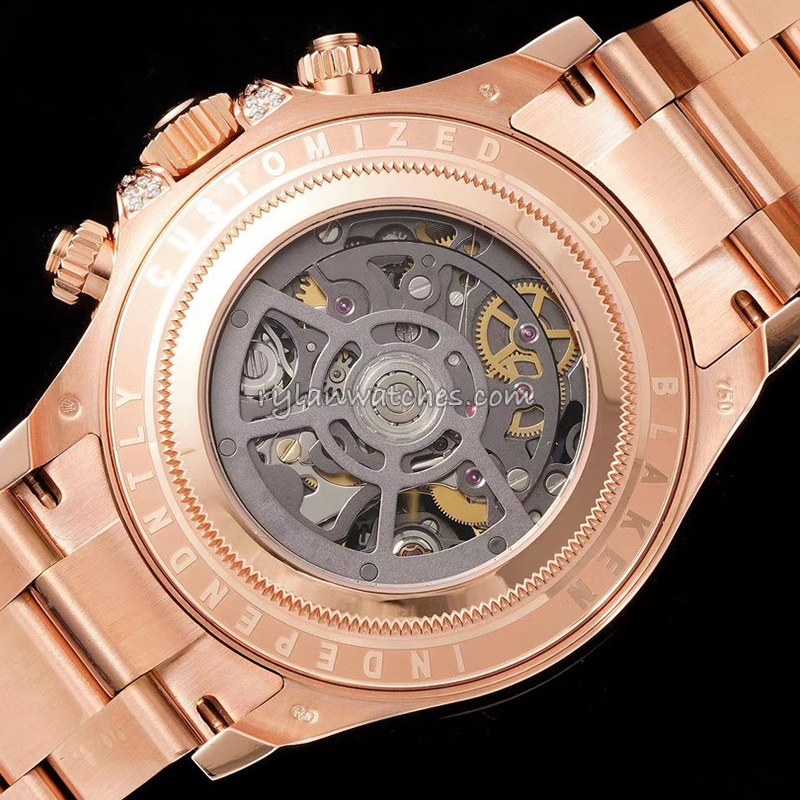The Rolex Daytona Rainbow Skeleton Rose Gold Clone 4130 is a remarkable fusion of engineering, artistry, and craftsmanship. Developed exclusively by GET Factory, this 1:1 super clone pushes the limits of mechanical transparency and aesthetic brilliance, mirroring the complexity and charisma of the original Rainbow Daytona.