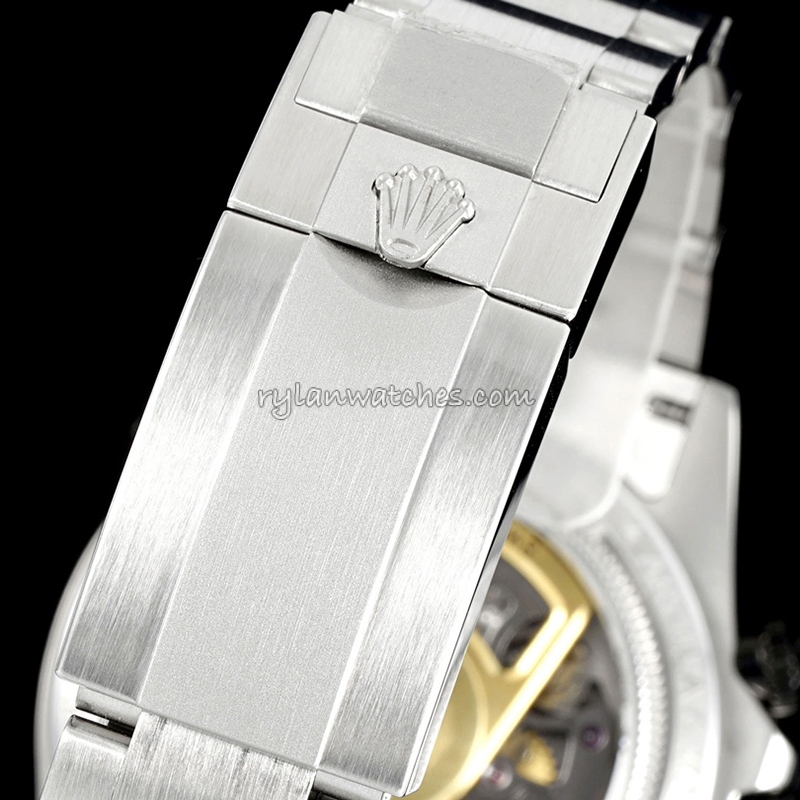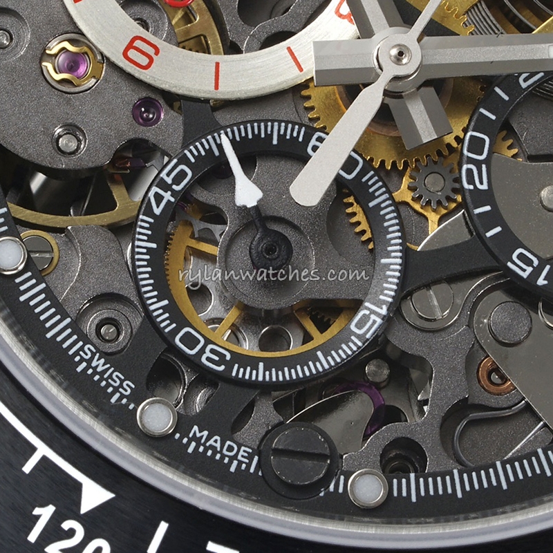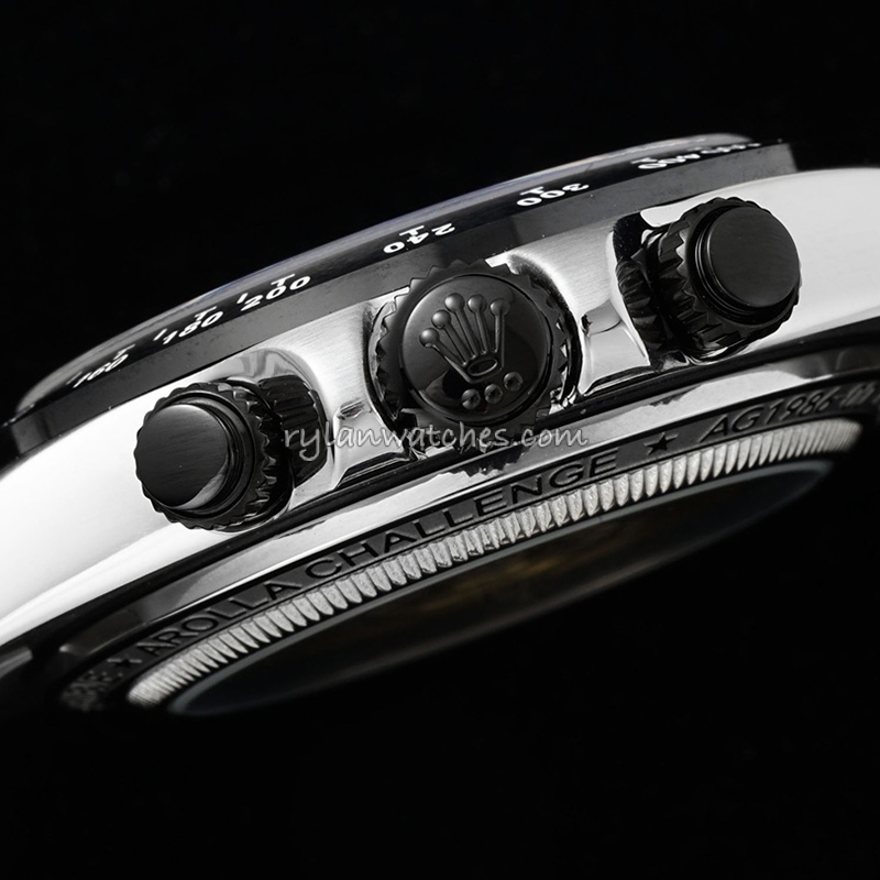 What distinguishes the Rolex Daytona Skeleton ADG Black Crown Clone is the synergy between artistry and function. Each bridge and wheel is angled, polished, and satin-finished to reflect light dynamically. Touches of color — including red, yellow, and blue indicators — provide visual depth and emphasize the chronograph’s racing heritage.