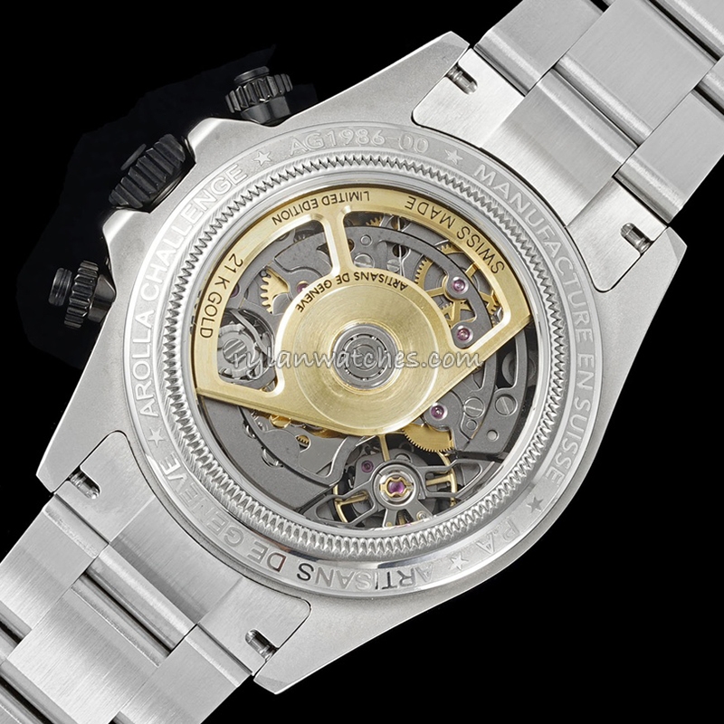 This 1:1 clone movement retains full chronograph functionality, offering 72 hours of power reserve and smooth automatic winding. Its redesigned bridge layout enhances visibility while preserving the performance and stability of the original 4130 caliber, a hallmark of precision engineering.
