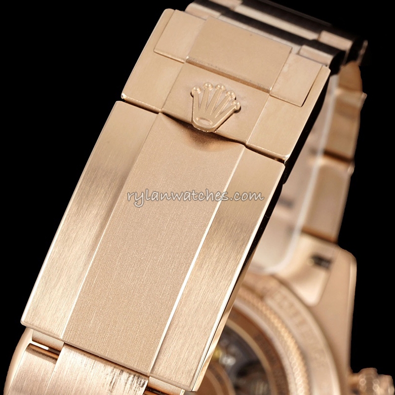 The Oyster bracelet ensures durability and comfort, featuring a brushed rose gold surface with a polished central link for added brilliance. Its secure folding clasp guarantees ease of wear, while maintaining the robust luxury Daytona owners expect. The watch’s balanced weight distribution makes it equally suitable for formal occasions or daily sophistication.